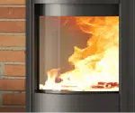 Die hohe Panoramascheibe bleibt dank des Hochtemperatur- Scheibenreinigungssystems rußfrei.